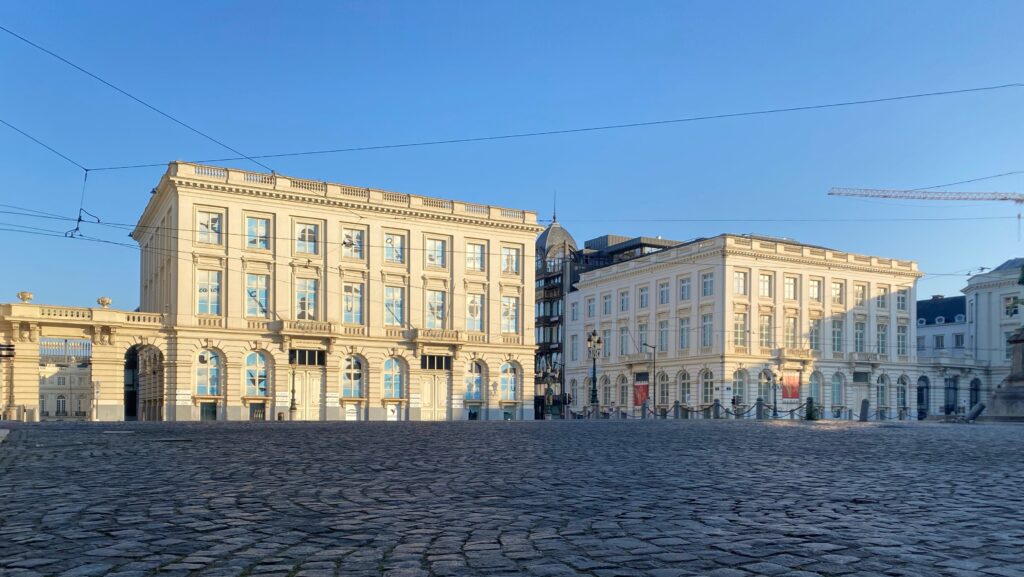 Bruxelles ville fantôme pendant la période de confinement au printemps 2020 pour tenter d’endiguer la première vague d’épidémie de COVID-19.